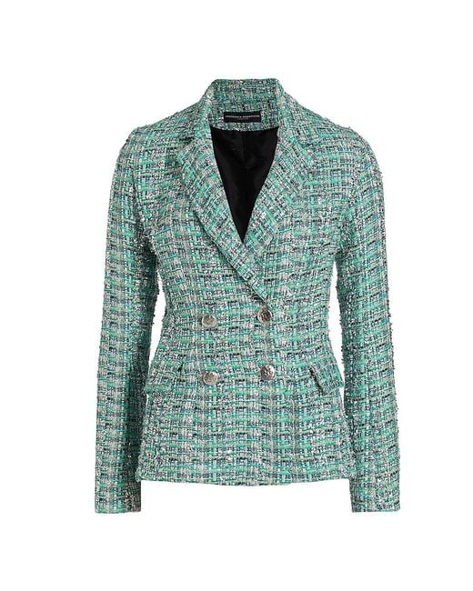 I DECIDED, TO RECREATE THIS EDGY LOOK, OF THE PLAID, TARTAN PRINT, OF THE SKIRT. I PAIRED BLUE SUNGLASSES, WITH ETSY HEYSPARKLY, BLUE SAPPHIRE CHANDELIER EARRINGS, UP AGAINST A FREDERICK ANDERSON PASTEL GREEN TWEED JACKET, WORN OPEN OVER A PACO RABANNE, LEOPARD PRINT CROPPED TOP. THAT I PAIRED, WITH A ROBERTO CAVALLI, RED TARTAN PRINT, AND LEOPARD PRINT SKIRT. I PAIRED IT WITH SOFT MINT-GREEN TIGHTS, AND JERSEY-KNOT ANKLE-STRAP POINTED TOE PUMPS.