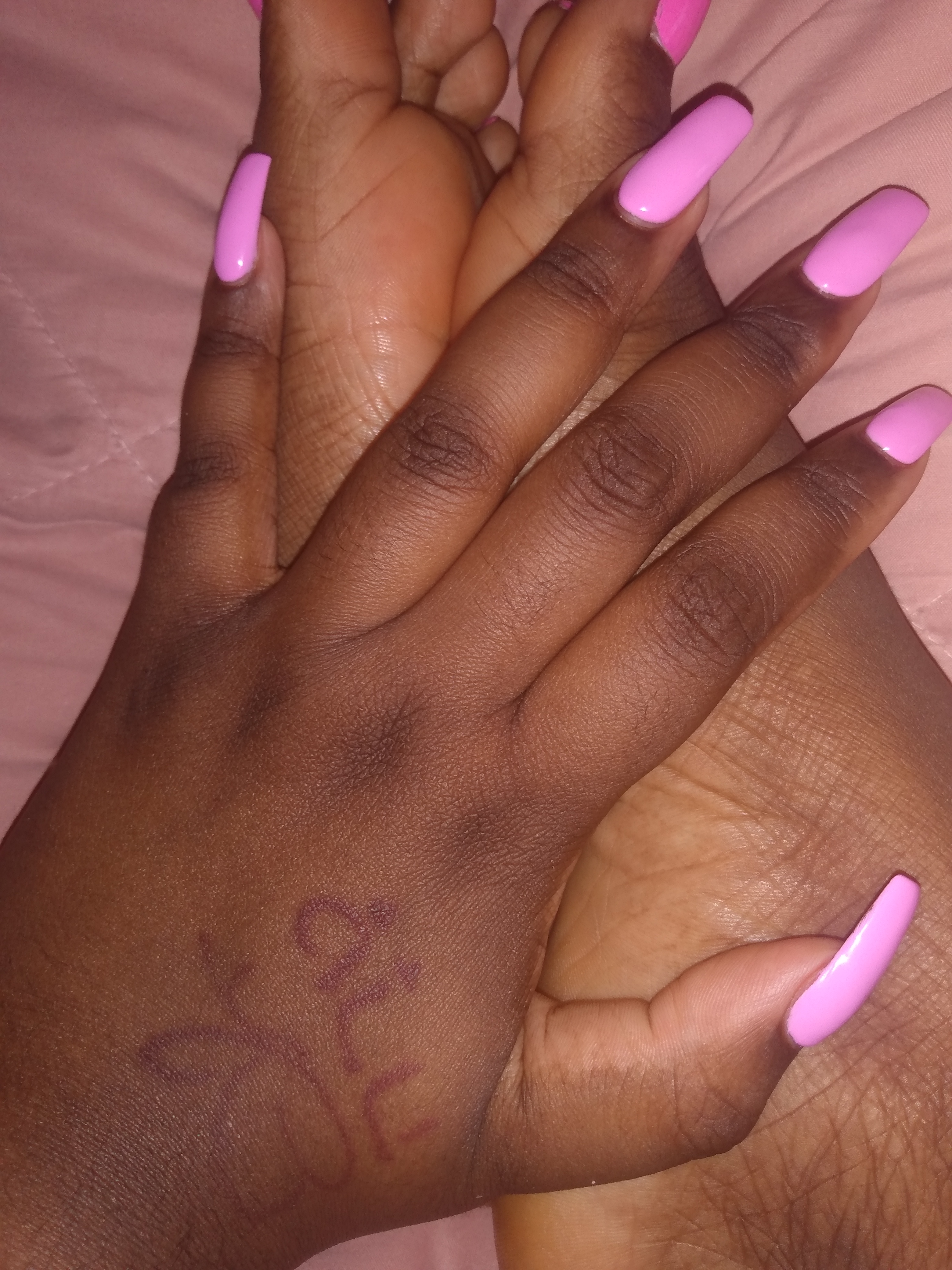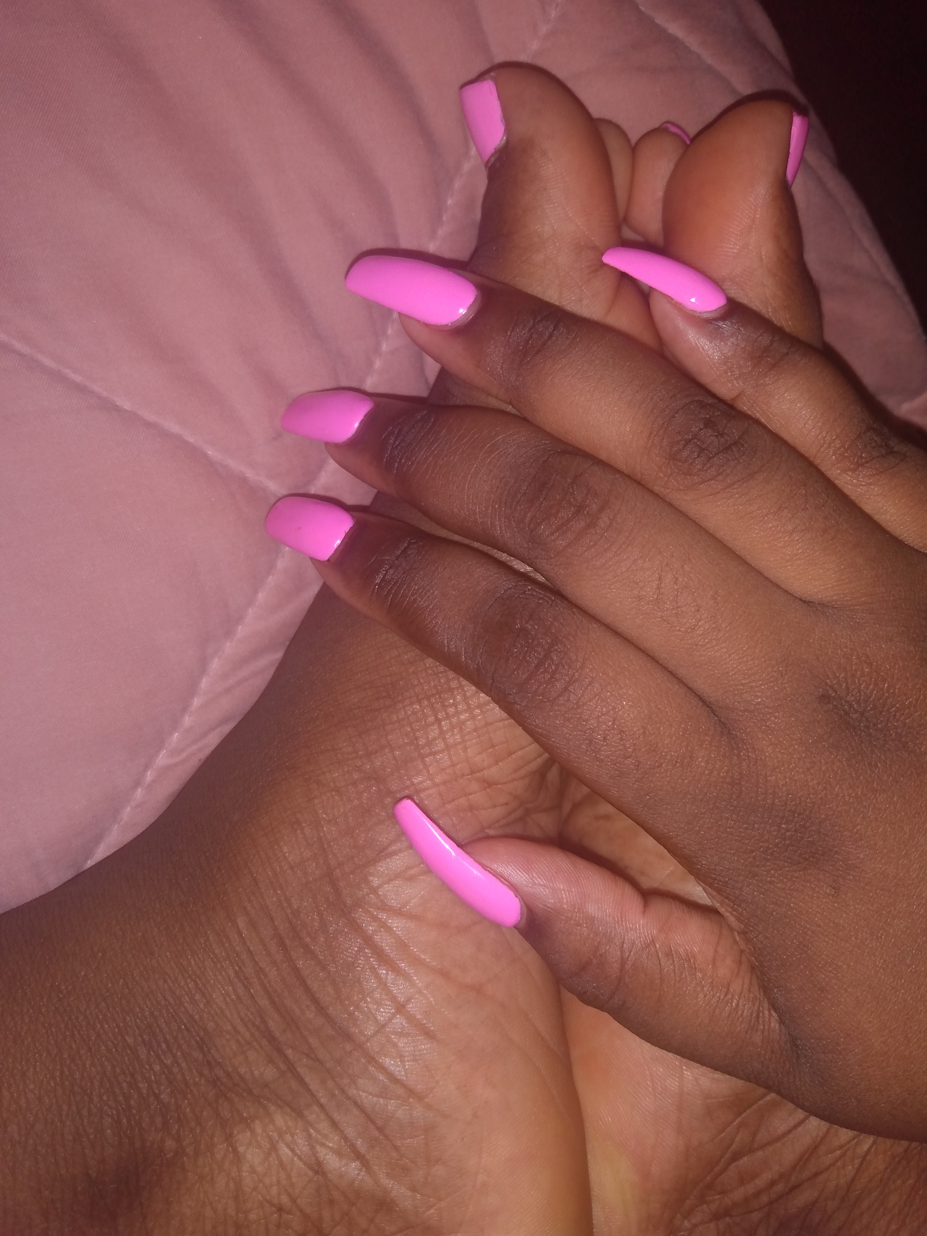 ALTHOUGH I HAVE APPRECIATION, FOR CARING FOR MY NATURAL HAIR, THANKS TO MY ABBAH I ALSO TAKE PRIDE IN MY NAILS, AND IM ALWAYS MAKING SURE. THAT THEY ARE POLISHED BRIGHT. BRIGHT. BARBIE PINK. THE ONLY OTHER COLOR. I LIKE TO PLAY AROUND WITH ON MY NAILS, ARE BLUES.