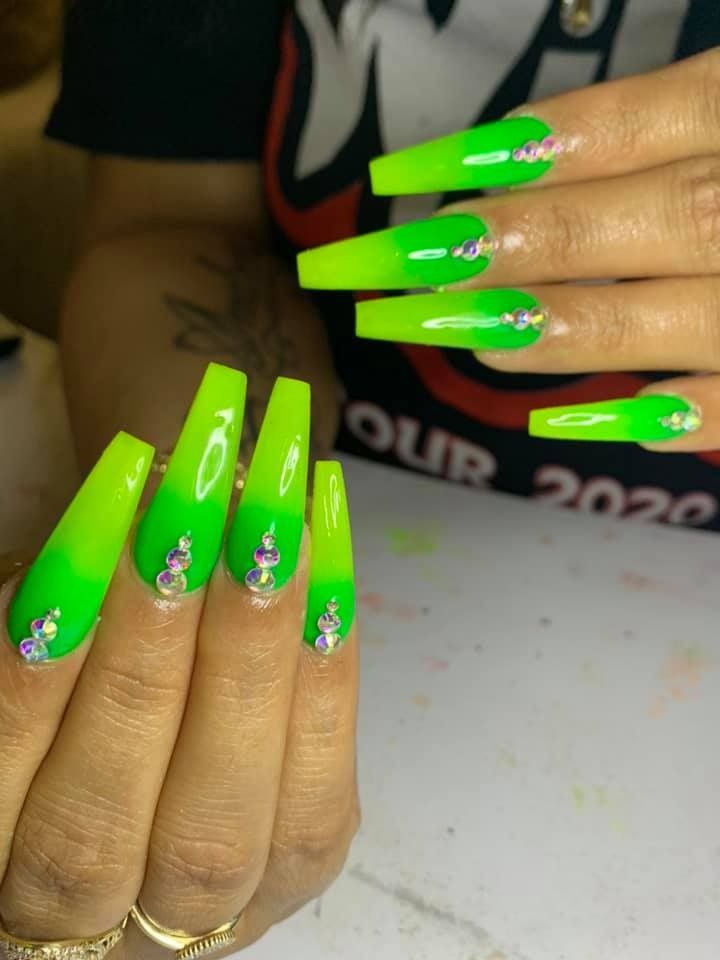 I DECIDED TO RECREATE, THE OVERSIZED BLAZER, WITH THE POINTED TOE PUMPS, MY FAVORITE PIECES, OF HER OUTFIT. I PAIRED PINK SUNGLASSES, WITH ETSY SUBRINASHOP, MULTI-COLOR CHANDELIER EARRINGS, PAIRED WITH HOT BARBIE-PINK LIPSTICK, PAIRED WITH A HOT-PINK MULTI-COLOR BLAZER, OVER A EMPORIO SIRENUSE, GREEN FLORAL CROPPED TOP. THAT I PAIRED, WITH AN ORANGE BELT, AROUND THE BLAZER, WITH THE CROP TOP, PEEKING THROUGH. I PAIRED THIS, WITH MOUSSY DISTRESSED DENIM FADED JEANS, INDIGO BLUE TIGHTS UNDERNEATH, WITH BRIGHT NEON GREEN SLINGBACK PUMPS. FOR THE REST, OF THE ACCESSORIES, AND THE JEWELRY, I PAIRED AN ORANGE HANDBAG, WITH BRIGHT GREEN, OMBRE NAILS, AND AN ETSY UNIQUEBEADABLES, ORANGE CRYSTAL BRACELET.