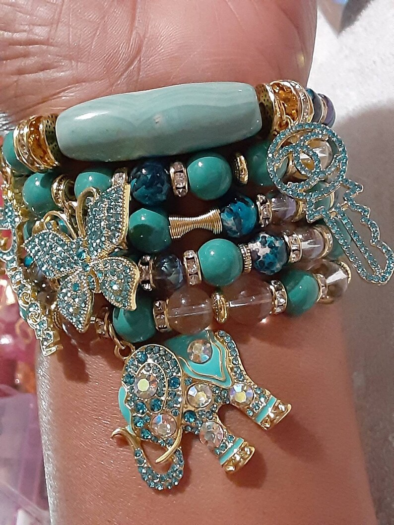 I PAIRED, GREEN CATEYE SUNGLASSES, WITH ETSY GAILSGREATGOODIES, TURQUOISE GREEN CHANDELIER EARRINGS, WITH A DOLCE AND GABBANA, LEOPARD PRINT SLEEVELESS DRESS. THAT I PAIRED, UNDERNEATH A DOLCE AND GABBANA, LEOPARD PRINT CROP TOP. I THEN PAIRED WITH A GREEN EMBELLISHED BUCKLE BELT AT THE WAIST AROUND THE TOP PAIRED OVER THE DRESS. I PAIRED, TEAL PEACOCK BLUE TIGHTS, AND DACCORI, GREEN PLATFORM SATIN SANDALS. FOR THE REST, OF THE ACCESSORIES, AND JEWELRY, I PAIRED A MATCHING GREEN SATIN BOX BAG, WITH ETSY MEAGANLINDSEYDESIGNS, GREEN BEAD BRACELETS STACK ON ONE HAND, PAIRED TOGETHER WITH AN ETSY MEAGANLINDSEYDESIGNS, GREEN IRIDESCENT CRYSTAL BRACELETS STACK. ON THE OTHER HAND, I PAIRED ETSY ICANDYJEWELSBOUTIQUE, TEAL GREEN AND TURQUOISE, CHUNKY STONE, AND BEAD, BUTTERFLY AND ELEPHANT, CHARM BRACELETS.