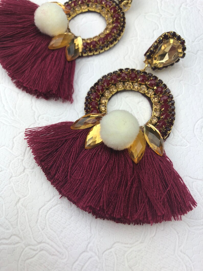 I DECIDED TO RECREATE THE LOOK, OF THE WOOL BLAZER, WITH THE MATCHING SKIRT SINCE THESE ARE MY FAVORITE PIECES OF HER OUTFIT. I PAIRED ETSY KALYPSODESIGN, BURGUNDY AND GOLD CHANELIER TASSEL FRINGE EARRINGS, WITH BARBIE HOT-PINK LIPSTICK, PAIRED WITH A GREY BELTED GUCCI, WOOL BLAZER. I PAIRED IT, OVER A GANI, BLUE-MULTICOLOR STRIPED SHIRT, THAT WILL BE UNBUTTONED, SLIGHTLY, CLASSILY TUCKED, INTO A ERMANNO SCERVINO, GREY WOOL SKIRT. THAT I PAIRED, WITH BRIGHT BLUE TIGHTS, AND BURGUNDY PATENT MARY-JANE ANKLE STRAP PLATFORMS. FOR THE REST OF THE ACCESSORIES, I PAIRED A BURGUNDY MINI BAG, WITH GOLD EMBELLISHED BUTTONS. MY BRIGHT BLUE NAIL COLOR, WITH THE RING FINGER, BEING THE BARBIE-PINK ACCENT NAIL. FOR THE LAST PIECE, OF JEWELRY, I PAIRED ETSY ZOEBYDESIGN, BURGUNDY AND GOLD, STACK ACRYLIC BANGLES, AND BEAD BRACELETS.