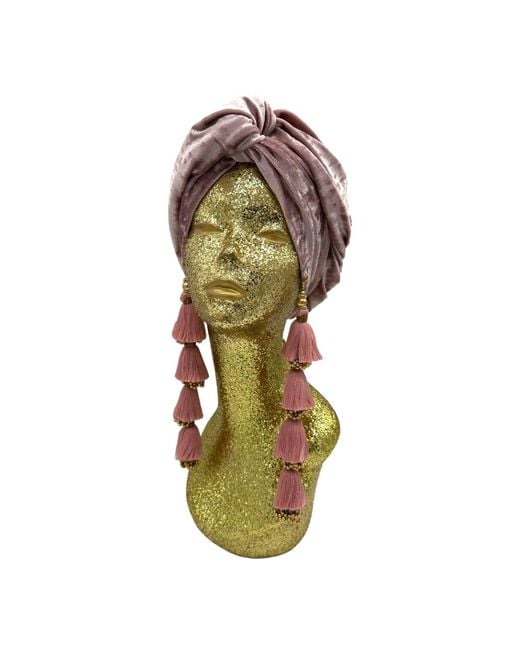 I PAIRED ETSY MUAVE-PINK TASSEL TURBAN, WITH ETSY CUCARACHAZ, BARBIE-PINK AND GOLD, VINTAGE JEWELED HEART EARRINGS, PAIRED WITH BARBIE-PINK LIPSTICK, THAT I PAIRED, WITH GIVENCHY, WHITE SILK OVERSIZED SHIRT, WORN UNDERNEATH A FLEUR DE MAL, IVORY CROPPED SATIN BUSTIER, TUCKED INTO MIU MIU, WHITE PLEATED SKIRT, BLACK SHEER TIGHTS, AND AMINA MUADDI, WHITE PLATFORM ANKLE STRAP PUMPS.