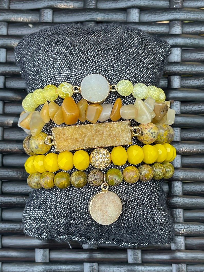 I PAIRED TWO-TONE MINT GREEN EARRINGS, WITH A ZODIG AND VOLTAIRE, PINK BUTTON UP BLOUSE, WORN UNDERNEATH A LORETTA CAPONI, PINK PIPED FLORAL PRINT DRESS, THAT I PAIRED, WITH A MINT BLUE BELT, PASTEL BLUE TIGHTS, AND YELLOW MINT GREEN AND ORANGE COLORBLACK SLINGBACK PUMPS. FOR THE REST OF THE ACCESSORIES, AND THE JEWELRY, I PAIRED A YELLOW HANDBAG, WITH A GREEN STONE BEAD BRACELET, ON ONE HAND, AND ON THE OTHER HAND. I PAIRED ETSY YELLOW BEAD AND STONE STACKED BRACELETS.