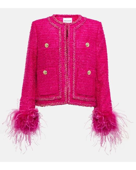 I DECIDED TO RECREATE THIS HOT-PINK TWEED LOOK. I PAIRED A PURPLE TURBAN, WITH LAVENDER- PURPLE SUNGLASSES, PINK AND PURPLE STONE CHUNKY STONE VINTAGE EARRINGS, WITH LAVENDER BARBIE-PINK LIPSTICK, THAT I PAIRED REBECCA VALLANCE, PINK TWEED JACKET, WITH DETAILED FEATHER CUFFS, THAT I PAIRED CLOSED, WITH A METALLIC PURPLE BELT, AROUND THE JACKET. I PAIRED A BARBIE HOT-PINK TWEED REBECCA VALLANCE, HOT-PINK TWEED FEATHER SKIRT. I PAIRED PINK TIGHTS, AND LAVENDER PURPLE LOAFER PLATFORMS. FOR THE REST OF THE ACCESSORIES, I PAIRED MY LAVENDER PINK NAILS, WITH A PURPLE SEQUINED, MINI BUCKET BAG, AND LAVENDER BEAD, CRYSTAL CHUNKY PURPLE BRACELETS.