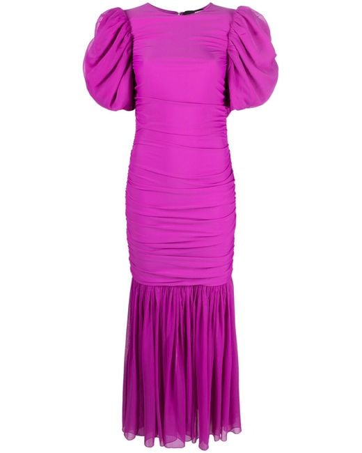 I PAIRED ETSY RED VINTAGE DROP EARRINGS WITH ROSE-RED LIPSTICK PAIRED WITH A ROTATE BIRGER, PURPLE PUFF-SLEEVE CHIFON DRESS WITH AN IVORY CREAM AND RED FLORAL PRINT DRESS THAT I PAIRED WITH PURPLE TIGHTS AND RED PATENT ANKLE STRAP PLATFORM PUMPS. FOR THE REST OF THE ACCESSORIES, I PAIRED AN IVORY-WHITE HANDBAG, AND AN ETSY PURPLE IRIDESCENT JEWELED CHUNKY RING WITH RED SQUARE GEOMETRIC JEWELED CUFF BRACELET.