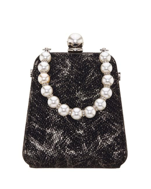 I PAIRED A WHITE EMBELLISHED TURBAN, WITH ETSY VINTAGE PEARL DROP EARRINGS, THAT I PAIRED WITH AN ORANGY-RED LIP, PAIRED WITH A SELF-PORTRAIT BLACK AND WHITE, TWEED JACKET, WORN OPEN OVER A PHILLIP PLEIN, BLACK AND WHITE CADY DRESS, THAT I PAIRED WITH BLACK TIGHTS, AND BLACK PATENT ANKLE STRAP PLATFORM SANDALS. FOR THE REST OF THE ACCESSORIES, AND THE JEWELRY, I PAIRED A BLACK PEARL HANDLE EMBOSSED WOOVEN METALLIC BOX BAG, ORANGY-RED NAILS, AND ETSY PEARL AND CRYSTAL FLORAL CLUSTER BRACELET.