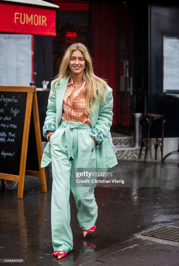THIS IS HANDS DOWN MY FAVORITE OUTFIT FROM EMILI SINDLEV, BECAUSE OF HOW DARING SHE PLAYED WITH PASTEL COLORS, UP AGAINST BOLD COLORS. YOU WOULDNT THINK WOULD GO. BUT EMILI SHOWS YOU OTHERWISE. LET’S DISCUSS HER OUTFIT. EMILI IS WEARING A MINT GREEN BLAZER, THAT SHE HAS PAIRED OVER ORANGE PLAID SHIRT, TUCKED INTO MINT GREEN HIGH-WAISTED PANTS, THAT SHE PAIRED WITH RED ORIENTAL FLORAL PRINT PUMPS. I DECIDED TO RECREATE THE PANTS SUIT, AND GIVE MYSELF A CHALLENGE, OF PLAYING WITH THE ORANGE AND THE RED.