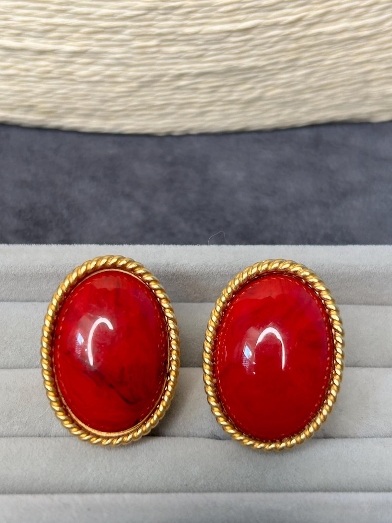 I PAIRED ETSY RED VINTAGE EARRINGS, WITH ORANGE-RED LIPSTICK, PAIRED WITH BODEN DESIGNER MINT GREEN GEO PRINT BLAZER, PAIRED OPEN OVER A GIVENCHY WHITE BLOUSE, THAT WILL BE TUCKED INTO MAX MARA, MINT-GREEN SILK HIGH-WAISTED TROUSERS, A BLUE BELT AROUND THE TROUSERS, PAIRED WITH MINT-GREEN TIGHTS, AND BLUE FLORAL PRINT WHITE PUMPS. FOR THE REST OF THE ACCESSORIES, AND JEWELRY, I PAIRED ORANGE-RED NAILS, WITH A GOLD TIGER BROOCH HANDLE, RED CROC EFFECT BAG, AND ETSY ORANGE AND GOLD VINTAGE BRACELET.