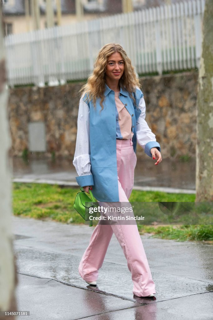 ITS NOT EVERYDAY I SEE A GOOD COLOR-BLOCK EXCUTED SUCCESSFULLY LIKE EMILI SINDLEV. EMILI SINDLEV IS WEARING A BLUE AND WHITE COLOR-BLOCK COAT PAIRED OVER A PINK AND BLUE COLOR-BLOCK TOP THAT SHE PAIRED WITH PINK PANTS AND WHITE PUMPS. FOR HER ACCESSORIES SHE PAIRED A GREEN HANDBAG. TARA 101: MY FAVORITE ASPECT ABOUT THIS OUTFIT, IS HOW WELL THE BLUE AND WHITE COLOR-BLOCK COAT REALLY COMPLIMENTS, PAIRED NICELY WITH THE PINK PANTS. SO, I DECIDED TO RECREATE THIS LOOK.