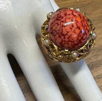 I DECIDED TO RECREATE THE FLORAL PRINT SWEATER PAIRED WITH THE PANTS AND DETAILED SHOES. I PAIRED A METALLIC BROWN HAT WITH ETSY VINTAGE CHUNKY GOLD EARRINGS. I PAIRED WITH BOLD RED LIPSTICK PAIRED WITH A PINKO, PINK FLORAL PRINT BLAZER WORN OPEN OVER A MAISON COMMON, BLACK TURTLE-NECK FLORAL PRINT SWEATER, PAIRED WITH PATRIZIA PEPE, PINK PANTS, BLACK TIGHTS, AND RED MULTI-COLOR WRAP AROUND FLORAL PLATFORM SANDALS. FOR THE REST OF THE JEWELRY, AND ACCESSORIES, I PAIRED A BLACK HANDLE METALLIC BAG, WITH BRIGHT RED NAILS, AN ETSY VINTAGE ORANGE MARBLE STONE RING, WITH GOLD CHUNKY BANGLES TO FINISH THE LOOK OFF.