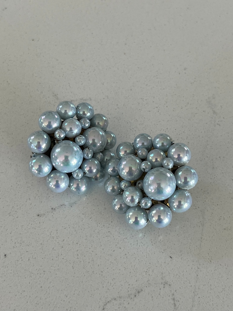 I PAIRED RED LIPSTICK, WITH ETSY BLUE PEARL VINTAGE CLUSTER EARRINGS, PAIRED WITH A DESA NINETEEN SEVENTY-TWO, DARK BROWN OVER-COAT TRENCH, THAT I PAIRED WITH A RED BELT, DARK BROWN TIGHTS, AND BLUE EMBROIDERED METALLIC COWBOY BOOTS.