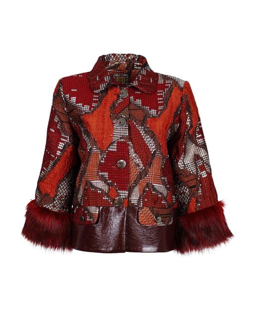 I DECIDED TO RECREATE THE FUR COAT, PAIRED WITH FALL COLORED LEATHER PANTS, AND DETAILED PUMPS. I PAIRED ETSY GOLD PEACOCK CHANDELIER EARRINGS, WITH BOLD RED LIPSTICK, PAIRED WITH LALIPOP, RED AND ORANGE JACQUARD FUR COAT, PAIRED CLOSED, OVER A MASSIMO ALBA, FALL ORANGE TURTLENECK SWEATER, PAIRED WITH A BLUE-EMBOSSED, GOLD-EMBELLISHED BUCKLE BELT AROUND THE COAT. I PAIRED THE OUTFIT WITH FEDERICA TOSI DESI, BROWN DARK-BROWN LEATHER PANTS, BROWN TIGHTS, AND BLUE CALF-SKIN TOM FORD PUMPS.