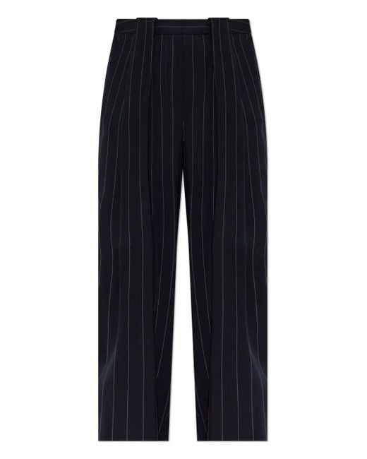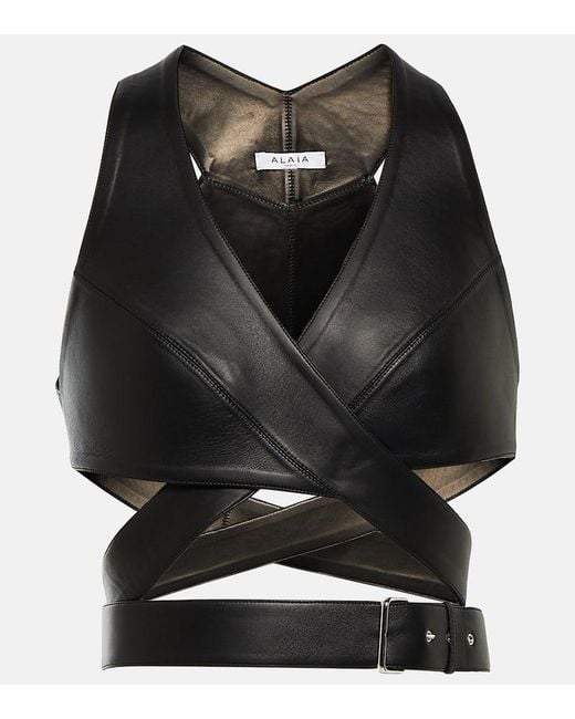 TIFFANY HSU IS PICTURED WEARING A BLACK LEATHER BLAZER, THAT SHE PAIRED OVER A LEATHER BRA TOP, THAT SHE PAIRED WITH HIGH-WAISTED BAGGY DENIM JEANS, A BLACK LEATHER BELT, AND BLACK PATENT PUMPS.