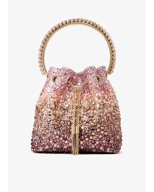 FOR THE REST OF THE ACCESSORIES, AND JEWELRY, I PAIRED A MATCHING JIMMY CHOO PINK CRYSTAL OMBRE HANDBAG, WITH BARBIE-PINK NAILS, AN ETSY, PINK PEARL EMBELLLISHED CUFF BRACELET ON ONE HAND. AND AN ETSY, PINK MOTHER-OF-PEARL BRACELET ON THE OTHER HAND.