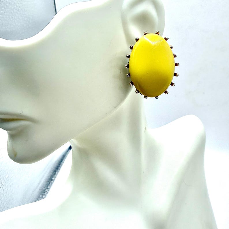 I PAIRED ETSY YELLOW VINTAGE CHUNKY CLIP ON EARRINGS, WITH BARBIE-PINK LIPSTICK, THAT I PAIRED WITH A WEEKEND MAXMARA, YELLOW, PINK FLORAL-PRINT COAT, THAT I PAIRED OPEN OVER A SAFIYAA, BARBIE-PINK PEPLUM CREPE TOP, PAIRED WITH ELEVENTY, WHITE TROUSERS. THAT I PAIRED WITH YELLOW PATENT PUMPS, AND A GUCCI BAMBOO HANDLE ORANGE BAG.