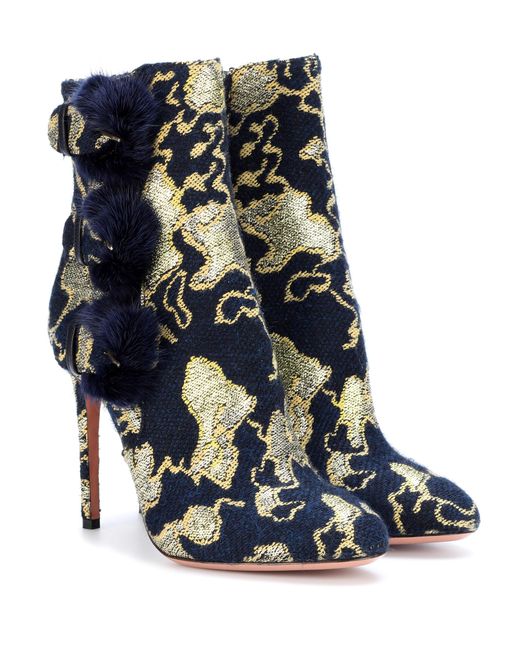 aquazzura-blue-Exclusive-To-Mytheresa-Com-Sinatra-105-Fur-trimmed-Brocade-Ankle-Boots