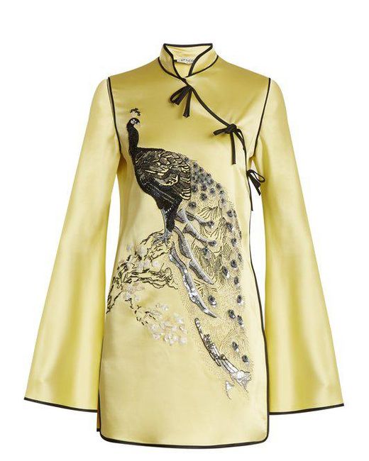 attico-YELLOW-MULTI-Elena-Peacock-embroidered-Satin-Mini-Dress2
