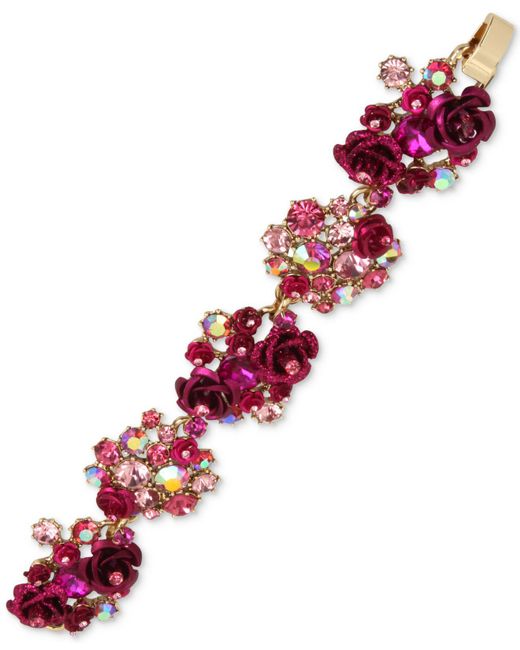 betsey-johnson-Pink-Gold-tone-Pink-Stone-Flower-Cluster-Flex-Bracelet