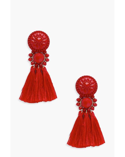 boohoo-designer-red-Megan-Floral-Tassel-Bead-Statement-Earrings