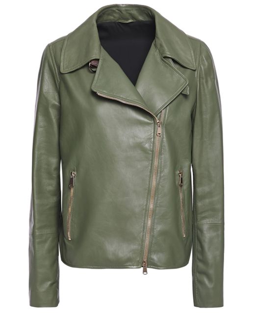 brunello-cucinelli-Leaf-green-Leather-Biker-Jacket-Leaf-Green