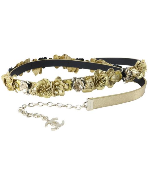 chanel-Gold-18c-85-34-In-Fancy-Leather-Flower-Chain-Embellished-B153-Belt