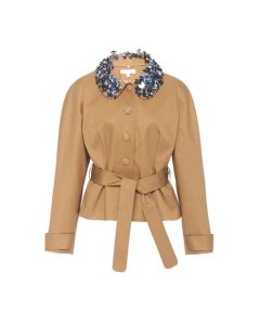 delpozo-brown-Belted-Embellished-Cotton-twill-Jacket
