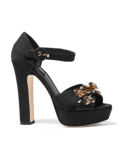 dolce-gabbana-Black-Embellished-Brocade-Platform-Sandals (1)