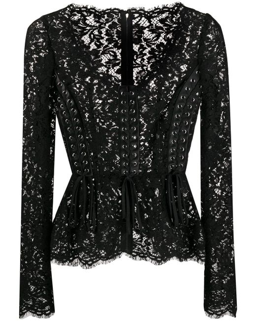 dolce-gabbana-Black-Floral-Lace-Corset-Style-Blouse