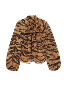 dolce-gabbana-brown-Pussy-bow-Printed-Silk-blend-Chiffon-Blouse