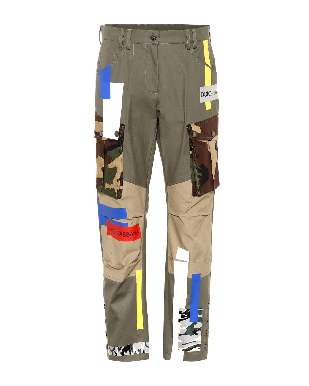 dolce-gabbana-dark-sage-green-Patchwork-Cotton-Pants