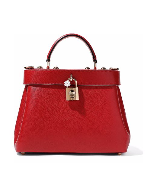 dolce-gabbana-Red-Studded-Pebbled-leather-Shoulder-Bag