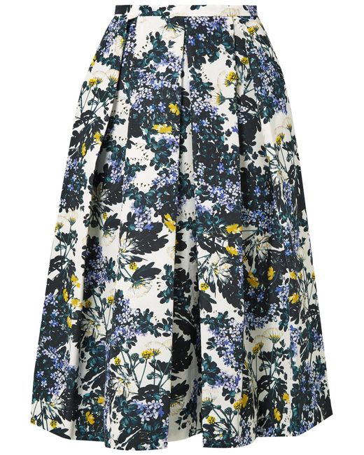 erdem-petrol-Ina-Pleated-Floral-print-Cotton-blend-Faille-Midi-Skirt