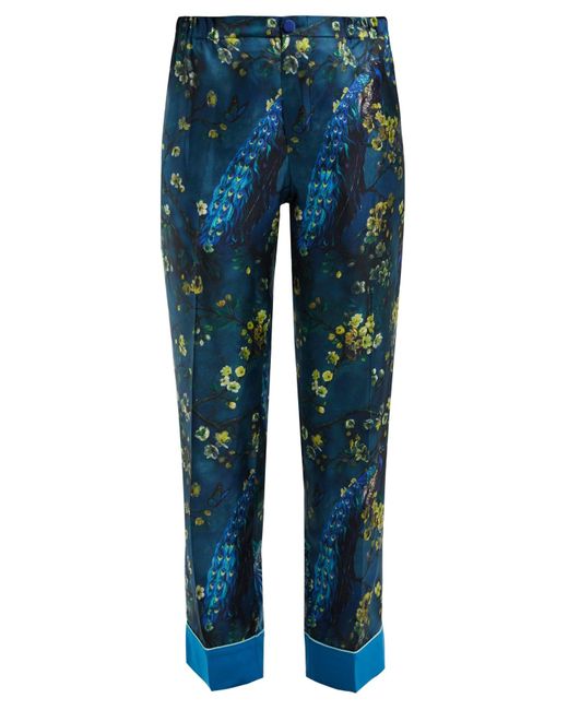 frs-for-restless-sleepers-blue-multi-Etere-Peacock-print-Silk-Trousers