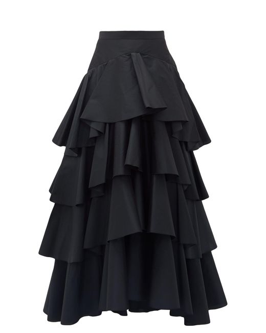 giambattista-valli-black-Tiered-Ruffled-taffeta-Maxi-Skirt