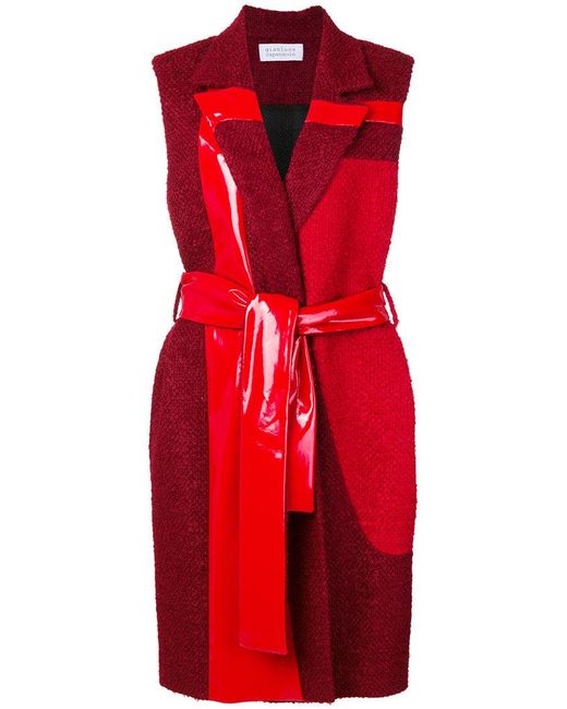 gianluca-capannolo-Red-Belted-Sleeveless-Coat