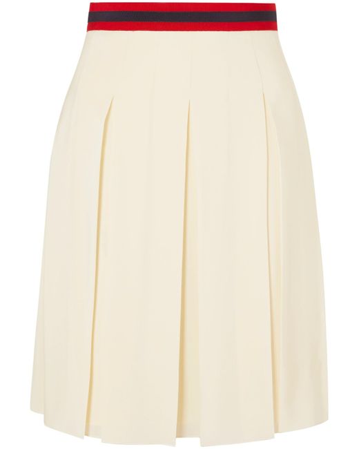 gucci-ecru-Grosgrain-trimmed-Pleated-Washed-silk-Skirt