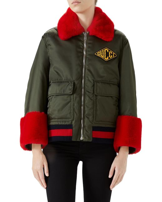 gucci-Military-Green-Multi-Faux-Fur-Trim-Nylon-Flight-Jacket