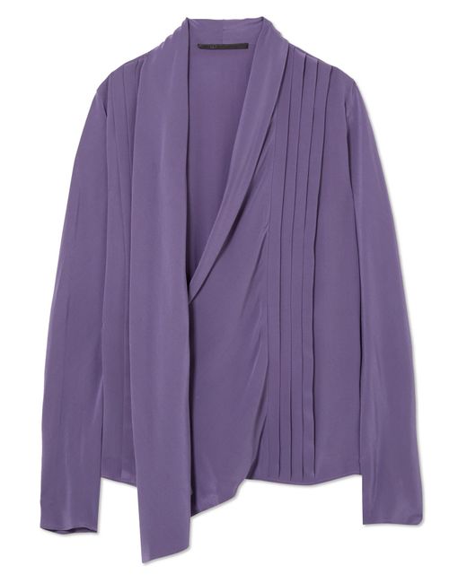 haider-ackermann-dark-purple-Pleated-Silk-crepe-Wrap-Blouse