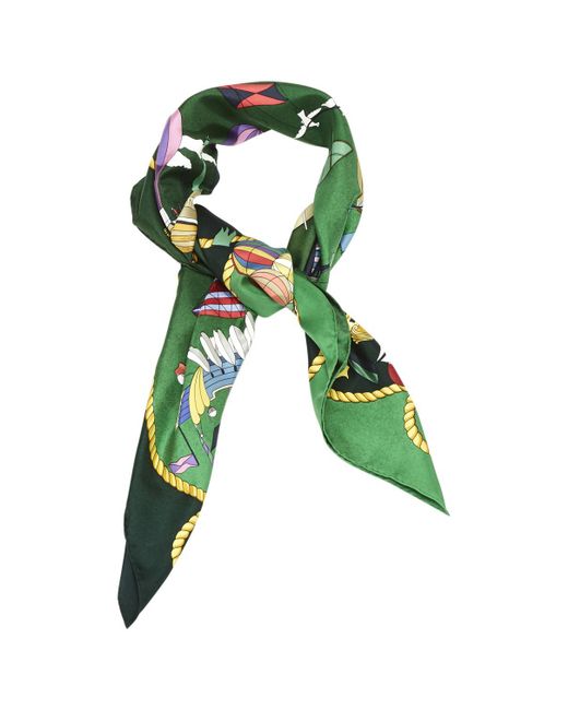 hermes-Green-Pre-owned-Carre-Silk-Silk-Handkerchief