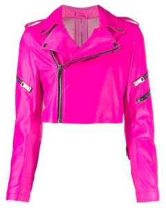manokhi-PINK-Cropped-Zip-up-Biker-Jacket