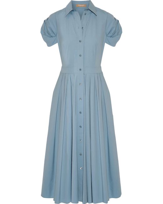 michael-kors-Sky-blue-Pleated-Cotton-blend-Poplin-Midi-Dress-Sky-Blue