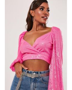 missguided-designer-Pink-Pink-Sequin-Puff-Sleeve-Milkmaid-Crop-Top