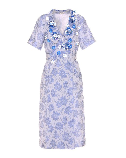 miu-miu-blue-Embellished-Jacquard-Dress