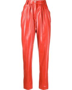 msgm-Red-Leather-Effect-Gathered-Trousers