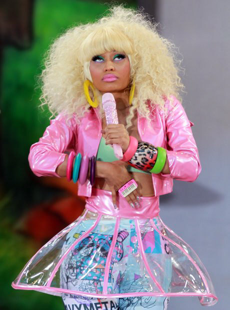 NIKKA’RA’RIANARAH IS VERY MUCH, INFLUENCED BY BARBIE. THE MOST IMPORTANT THING, ABOUT BARBIE, IS HER THE FACT THAT HER FAVORITE COLOR IS PINK, EVERYTHING PINK. I CAN RELATE TO BARBIE WITH THIS. BUT ITS MORE THAN, JUST WEARING PINK. BARBIE IS KNOWN, AS BEING A FASHIONABLY FIERCE, BARBIE DOLL. THE COOL THING, ABOUT BARBIE, IS SHE CAN WEAR, ANY COLOR AND ANYTHING. BUT ITS ALL, IN THE WAY YOU DO IT. IF YOU’RE GOING TO BE, A BARBIE, YOU HAVE TO, GO ALL OUT WITH IT. YOU HAVE TO, GO THE EXTREME, TO REALLY BRING, THE INNER BARBIE OUT. HERE’S HOW YOU DO IT. NIKKA’RA’RIANARAH HAS A PINK PATENT JACKET, WITH A BLUE STRAPLESS BRA. A PINK PATENT TUTU SKIRT, PINK AND BLUE PRINTED TIGHTS, AND COLORFUL BANGLES. SHES ALSO SPORTING, A BLONDE, KINKY, CURLY WIG.