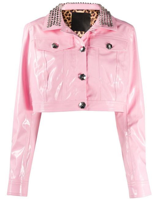philipp-plein-pink-Stud-embellished-Cropped-Jacket