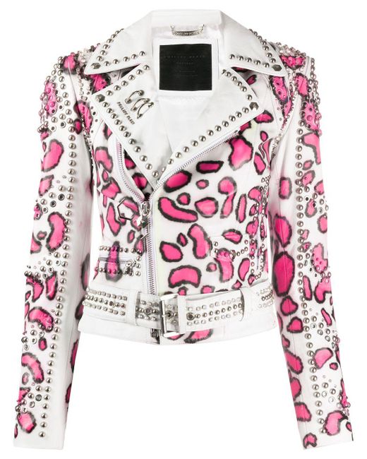 philipp-plein-White-Animal-Print-Stud-embellished-Jacket
