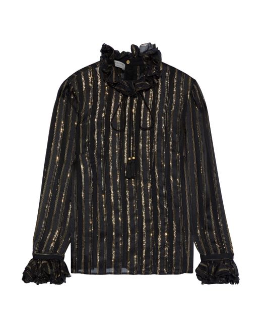 philosophy-di-lorenzo-serafini-Black-Ruffle-trimmed-Metallic-Striped-Silk-blend-Chiffon-Blouse-Black