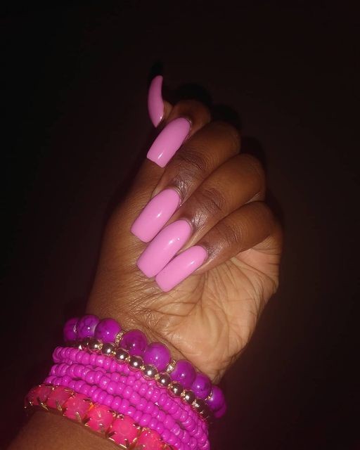 ONE THING ABOUT ME, I’M SURE OF, IS MY LOVE FOR PINK. AND MY HATE FOR PURPLE. I HATE THE COLOR PURPLE. I’VE ALWAYS HAVE. THE ONLY SHADES OF PURPLE, THAT I LIKE, THAT I CONSIDER, PINK-PIGMENTED BLUES, AS PLUTUVAH IS LAVENDER AND LILAC. SO, WHEN I CAME ACROSS, FLIPPING THROUGH SWATCHES, AT THE NAIL SALON, THIS PARTICULAR, SHADE OF PINK, BROUGHT TO MY ATTENTION, AND EAGERNESS, TO TRY IT. I KNEW I HAD A NEW SHADE, OF BARBIE-PINK AND BARBIE-LAVENDER, THAT I BECAME OBSESSED WITH.