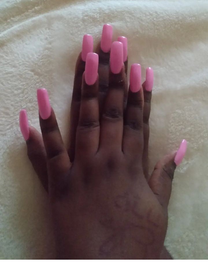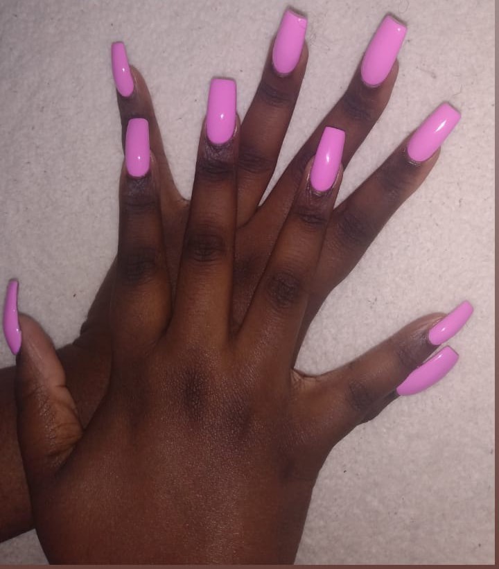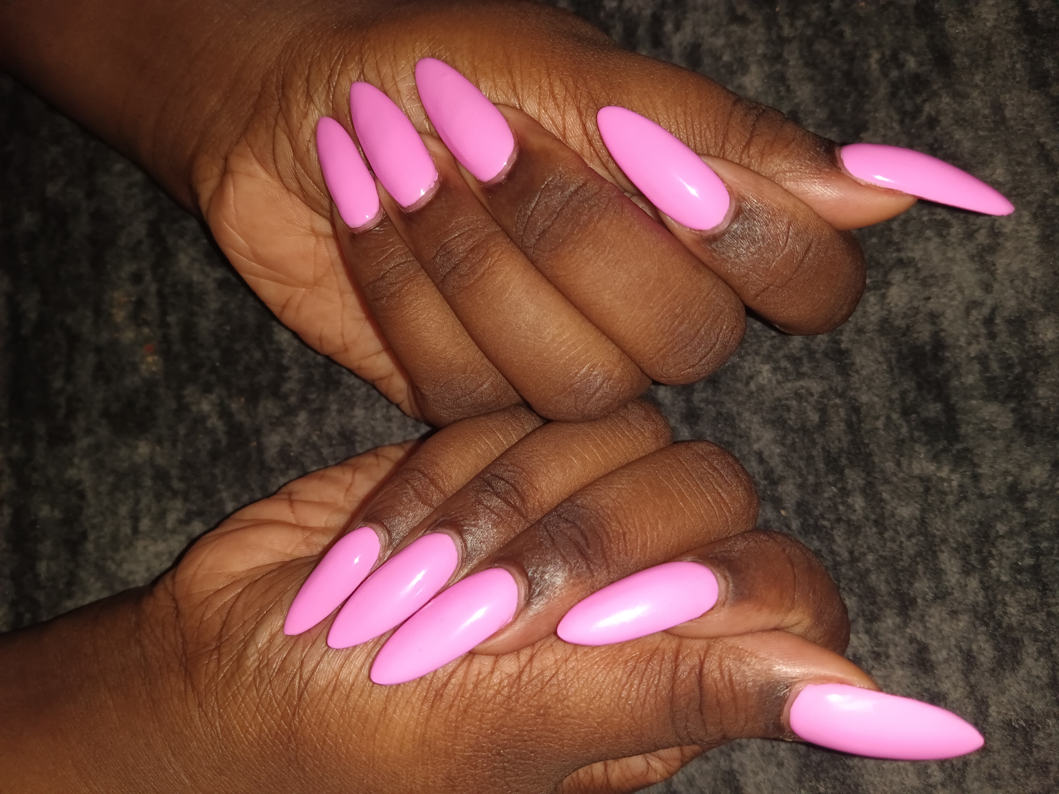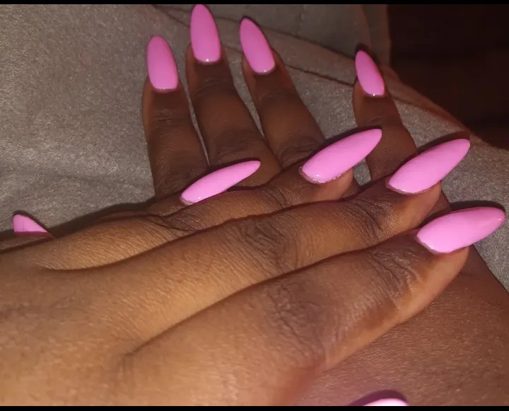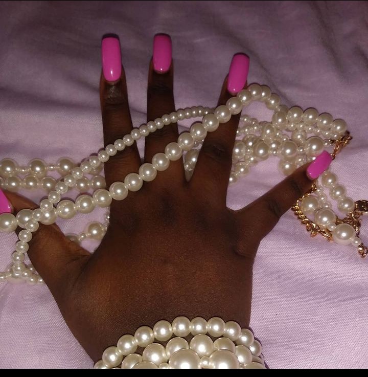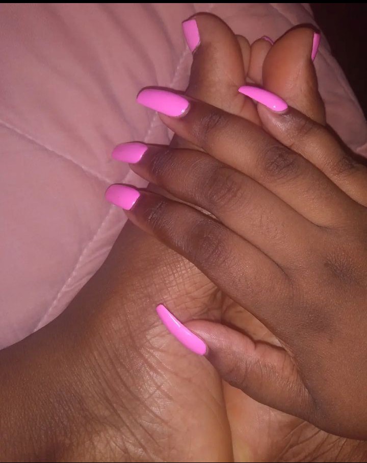 ALTHOUGH I HAVE APPRECIATION, FOR CARING FOR MY NATURAL HAIR, THANKS TO MY ABBAH I ALSO TAKE PRIDE IN MY NAILS, AND IM ALWAYS MAKING SURE. THAT THEY ARE POLISHED BRIGHT. BRIGHT. BARBIE PINK. THE ONLY OTHER COLOR. I LIKE TO PLAY AROUND WITH ON MY NAILS, ARE BLUES.